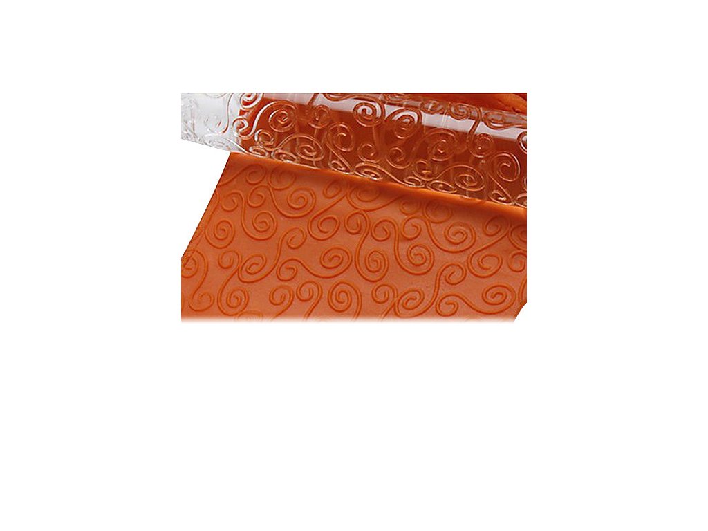 Wałek strukturalny z motywem haczyków. Przeznaczone do wykonywania nadruków w marcepanie, pomadzie. Za pomocą klasycznego gładkiego wałka rozwałkuj niezbędną wielkość i grubość masy, a następnie za pomocą wałka strukturyzującego rozpocznij odciskanie wzoru w masie.