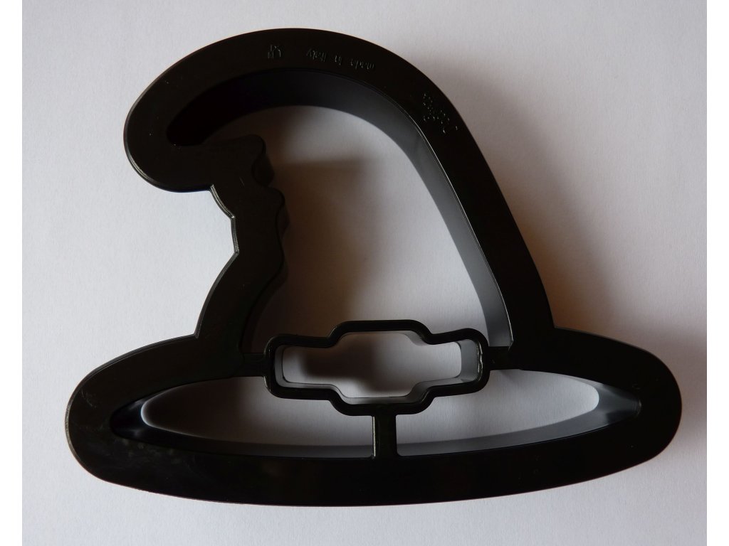 Plastikowa forma w kształcie kapelusza czarownicy.