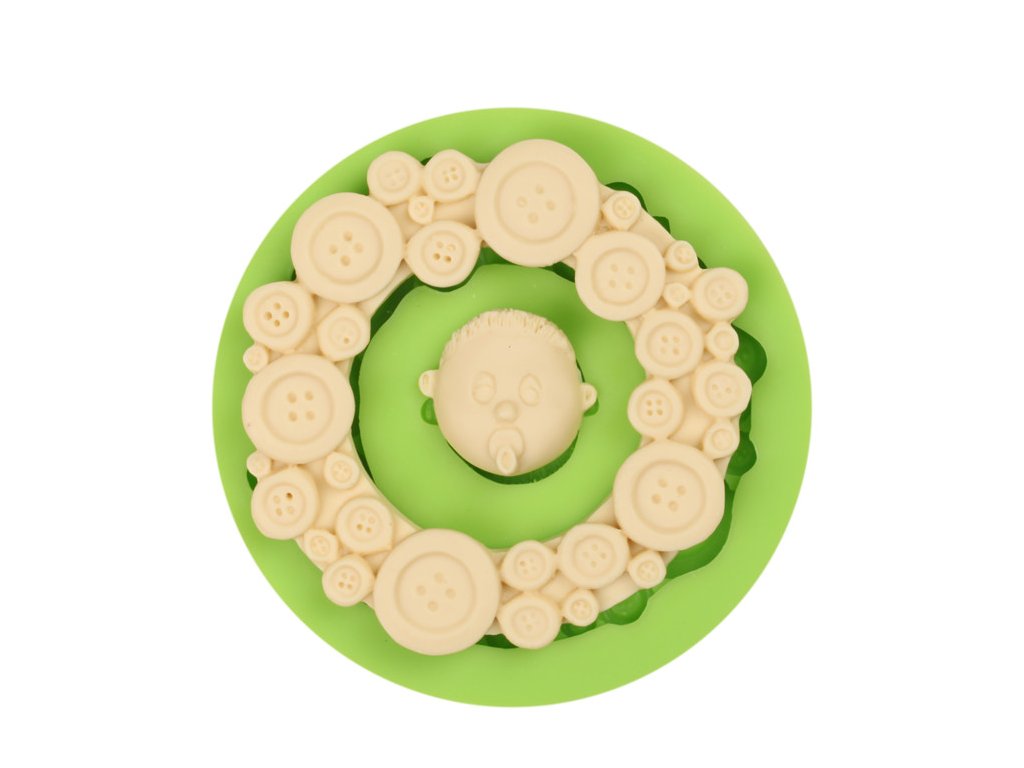 Silikonowa forma na ramkę z guzików i twarz dziecka.