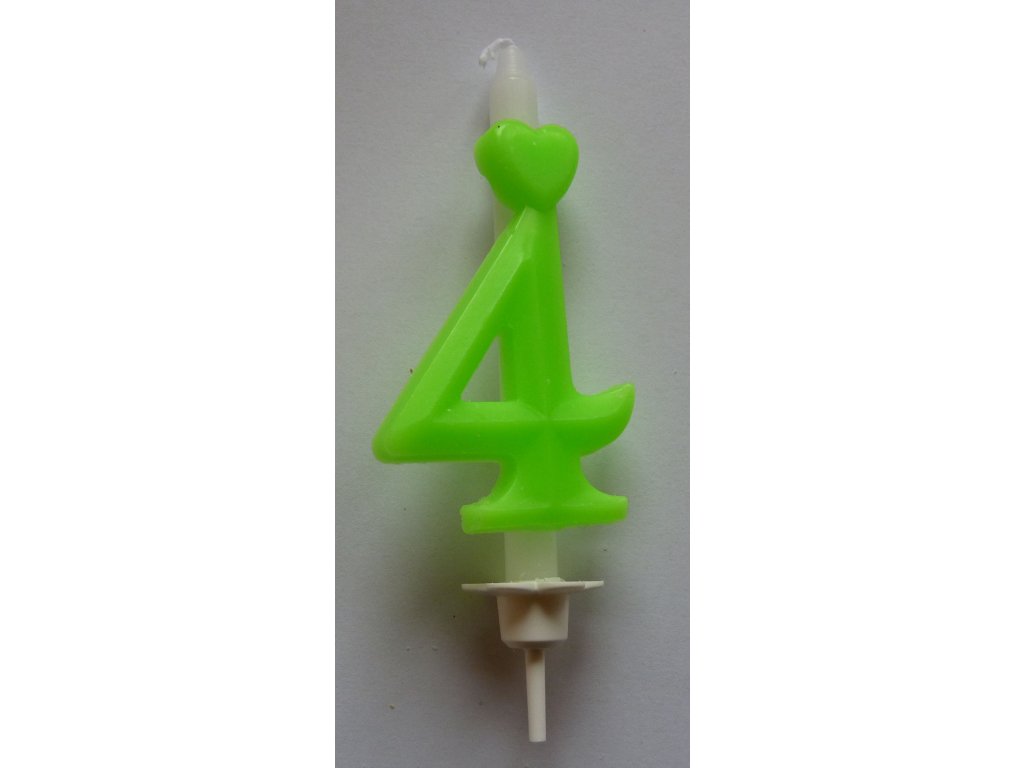 Zielona świeczka odblaskowa na plastikowej podstawie - cyfra 4