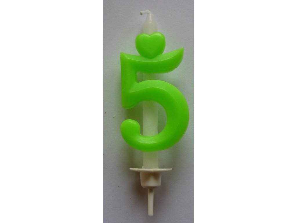 Zielona świeczka odblaskowa na plastikowej podstawie - cyfra 5