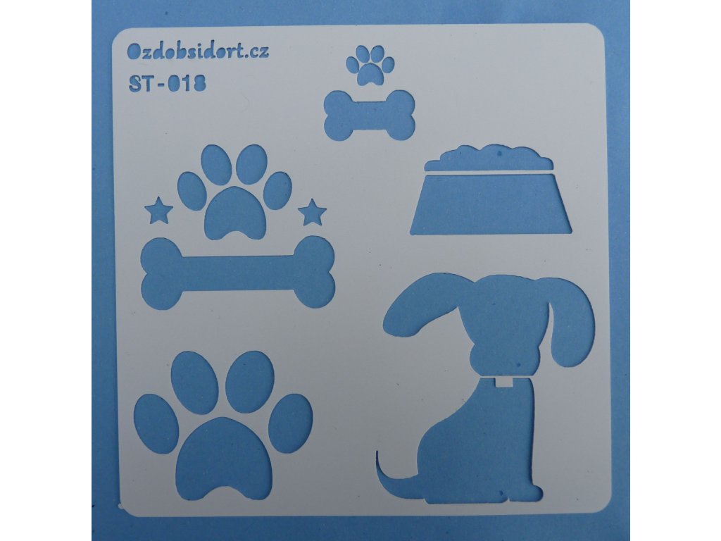Wielkość motywów: pies - 53x50mm, łapa - 42x35mm, kość - 44x16mm