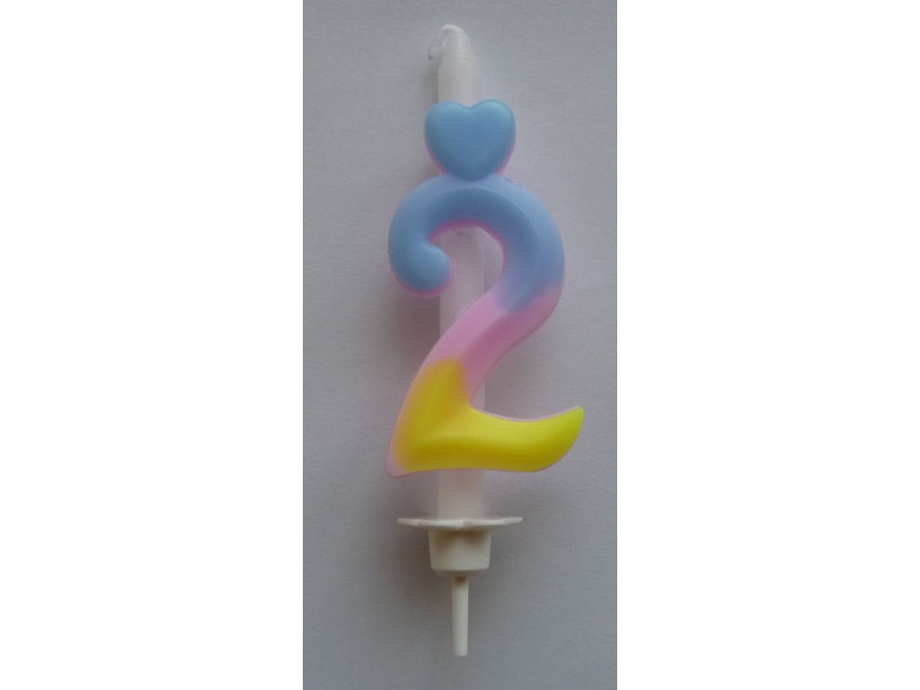 Tęczowa świeczka na plastikowej podstawie - cyfry 2